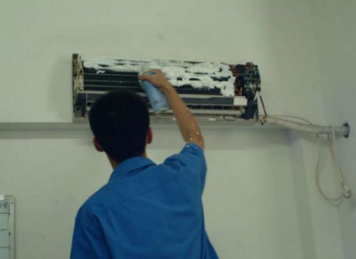 | 中站空调维修师傅给中站用户上门维修清洗空调。 |